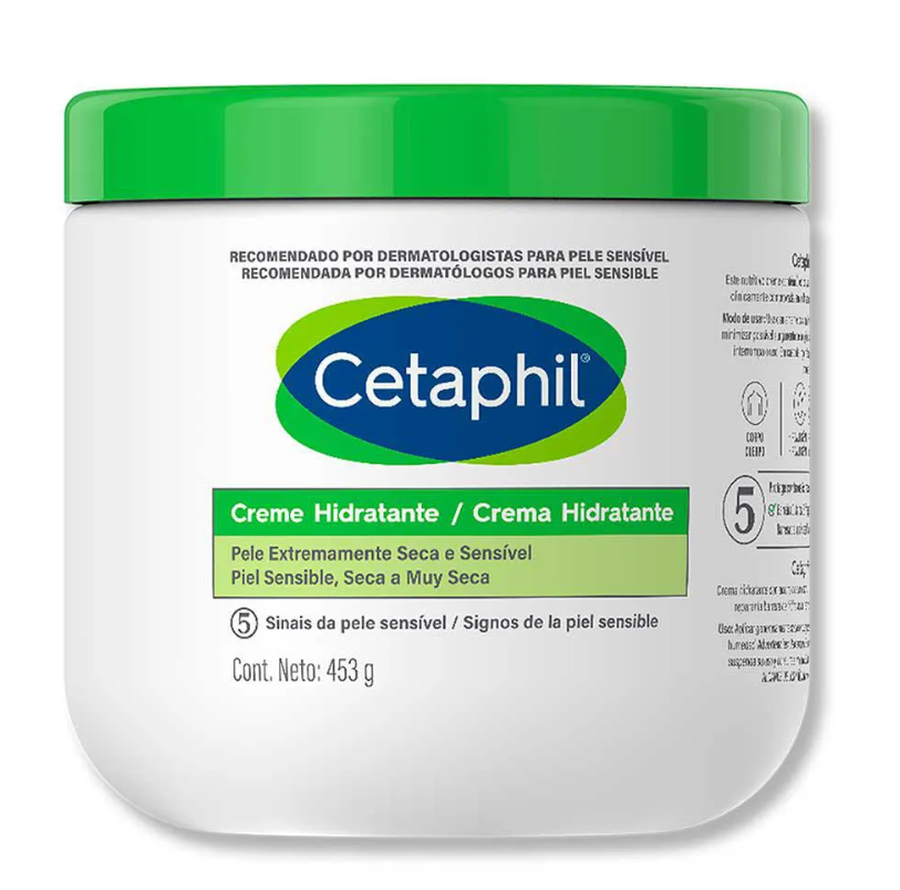 Cetaphil é um hidratante corporal indicado para peles extremamente secas e sensíveis. Composto por Niacinamida, Pantenol e Glicerina, o creme não possui fragrância e é hipoalergênico. De textura encorpada, não oleosa e de rápida absorção, o hidratante contém ativos umectantes, emolientes e oclusivos (que impedem que a pele perca água).