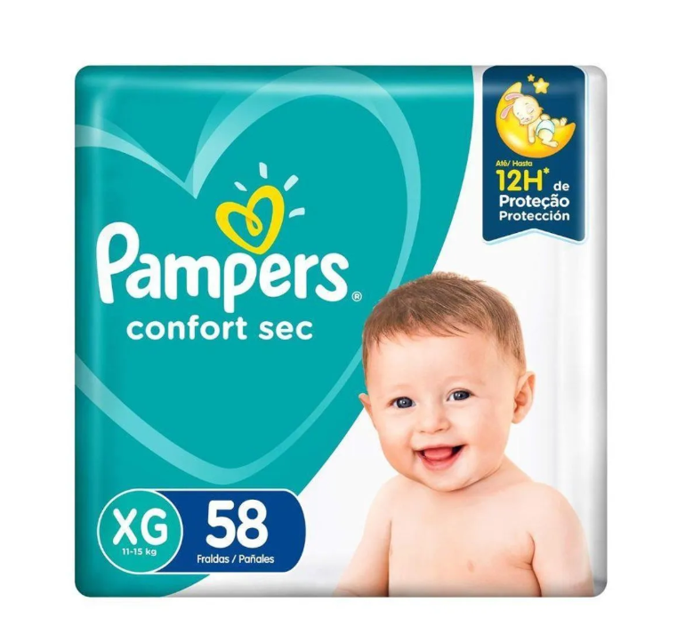 A Fralda Pampers Confort Sec tamanho XG, com 58 unidades, é a escolha perfeita para proporcionar conforto e proteção ao seu bebê.
