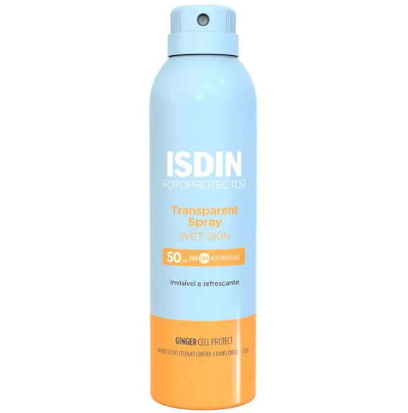 O Isdin Transparent Spray FPS 50 é um protetor solar corporal em spray com textura invisível, leve e refrescante de rápida absorção. Conta com tecnologia Wet Skin, que permite a sua aplicação tanto na pele molhada, sem deixar resíduo oleoso.