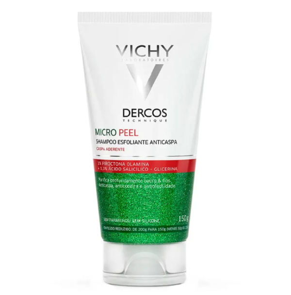 O Shampoo Esfoliante Vichy Dercos Micro Peel é um shampoo detox com dupla ação microesfoliante, ajuda a eliminar visivelmente a caspa desde a primeira utilização, acalmando e limpando profundamente o couro cabeludo.